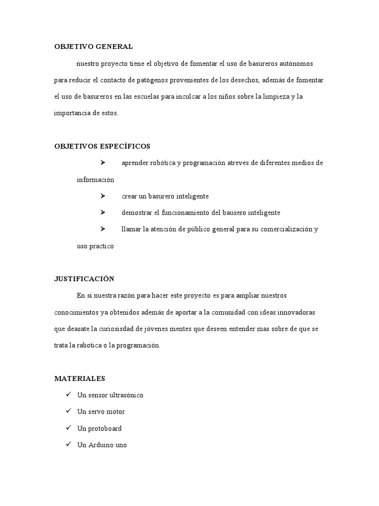 nuestro proyecto tiene el objetivo de fomentar el uso de basureros autónomos