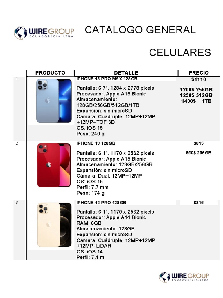 Pantalla: 6.7", 1284 x 2778 pixels 1200$ 256GB