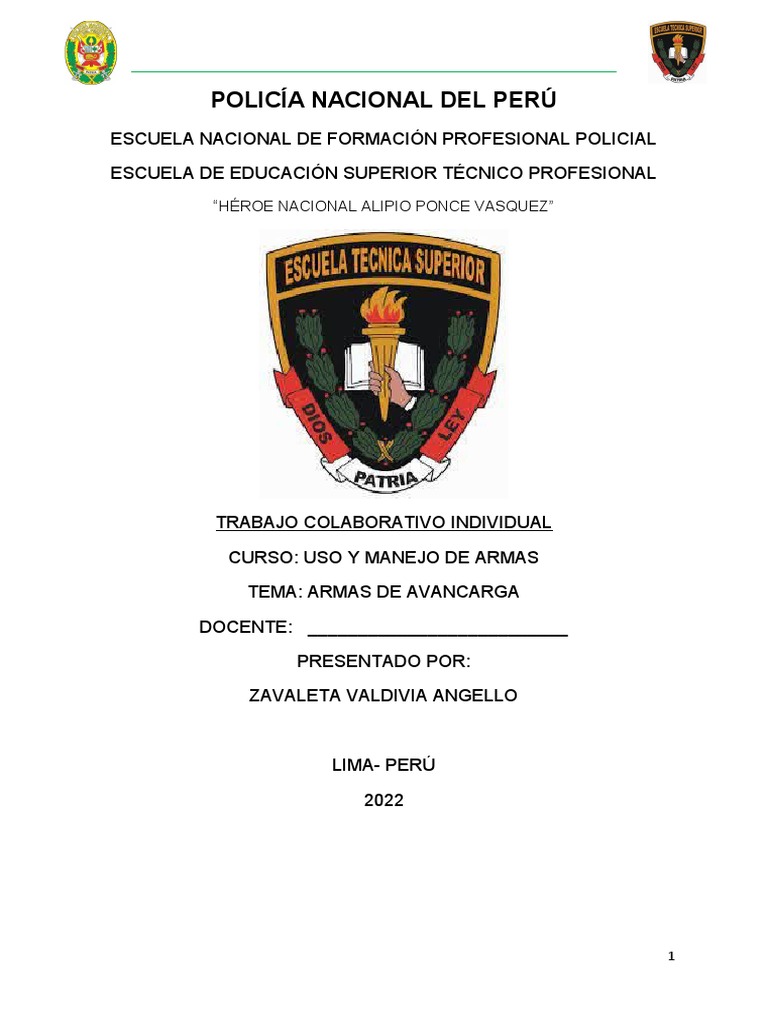 Rafael Peche Ortiz, (s.f). Historia sobre las armas de avancarga. Informe