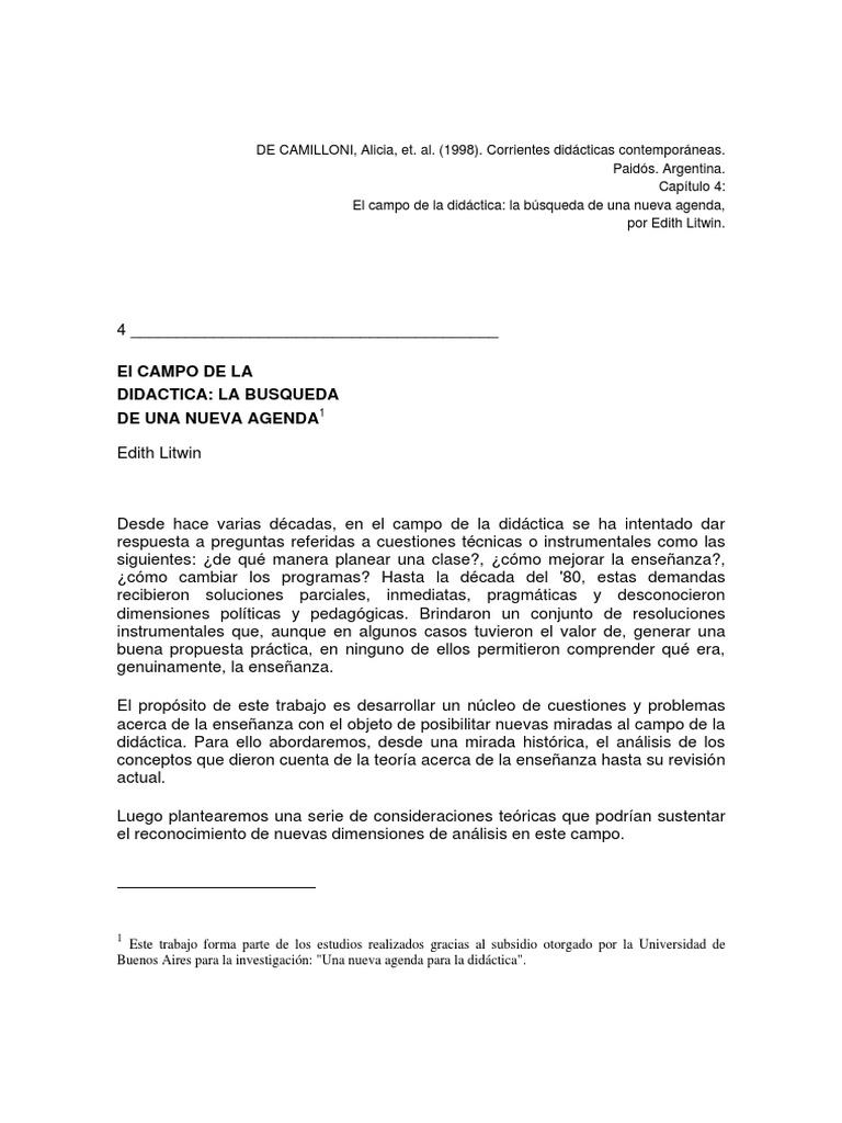 DE CAMILLONI, Alicia, et. al. (1998). Corrientes didácticas contemporáneas.