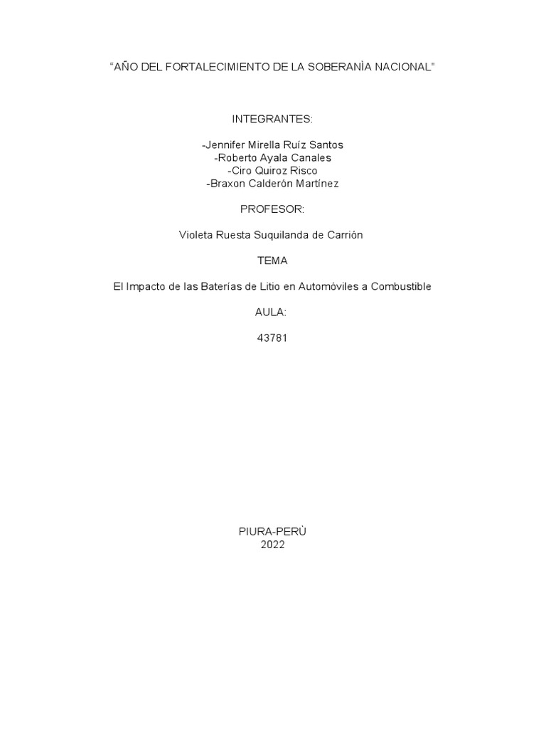 impacto de las baterías de litio en los automóviles a combustible. Debido a esto