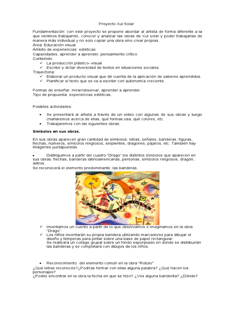 que venimos trabajando, conocer y analizar las obras de Xul solar y poder trabajarlas de