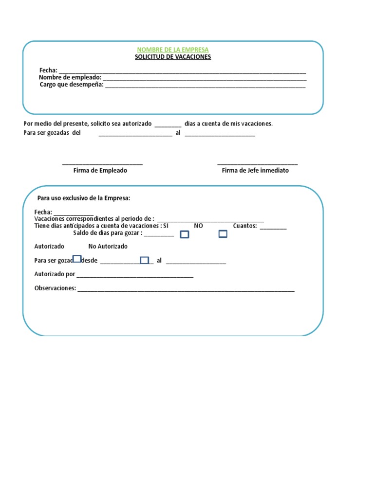 Por medio del presente, solicito sea autorizado ________ dias a cuenta de mis vacaciones.