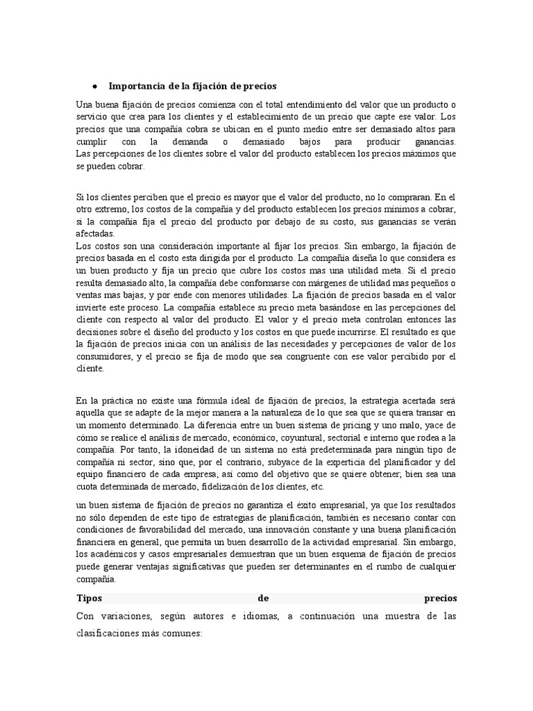 precios, por lo tanto, a la hora de determinar los precios se debe hacer de manera