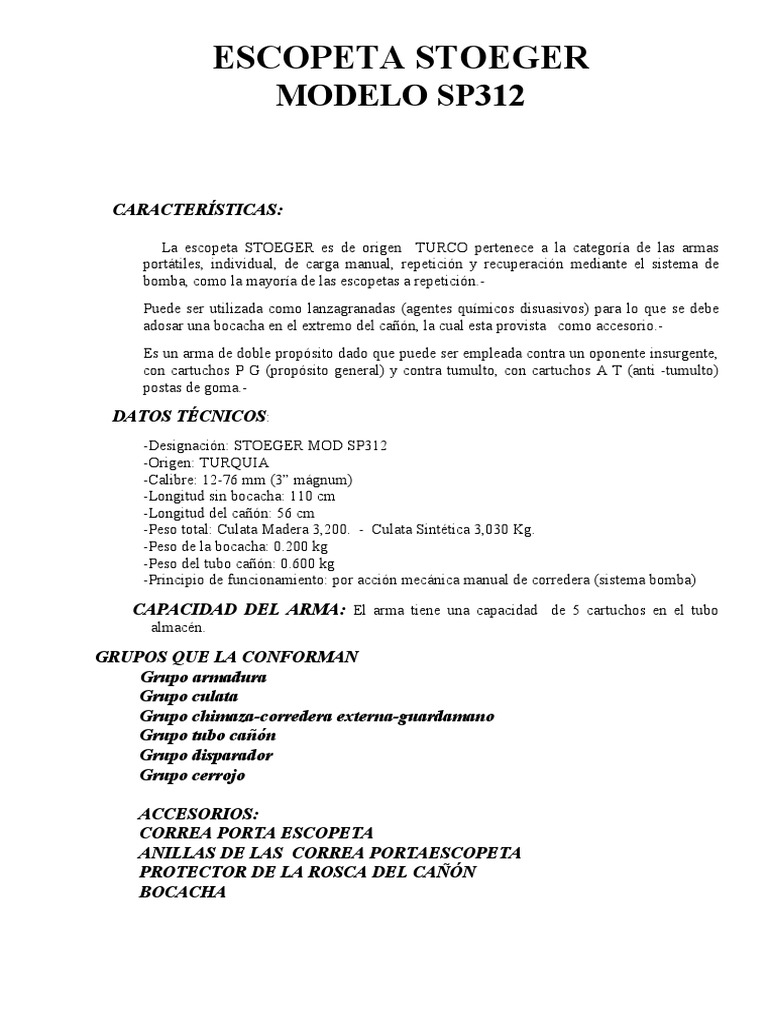 STOEGER mod SP312 no requiere mantenimiento especial, aparte de las siguientes