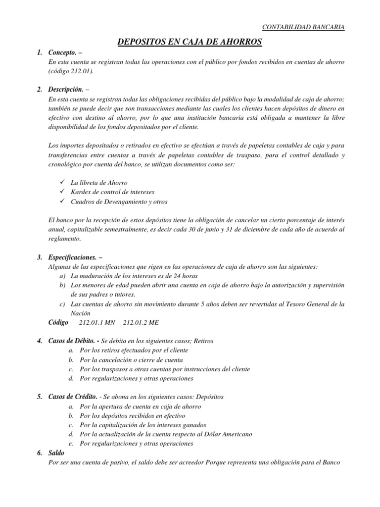 Algunas de las especificaciones que rigen en las operaciones de caja de ahorro son las siguientes:
