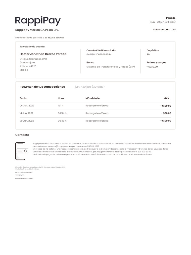 Rappipay México S.A.P.I. de C.V. Saldo actual : $0