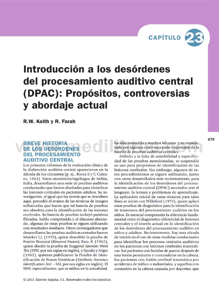 I n tro d u c c ió n a lo s d e s ó r d e n e s d e l p r o c e s a m ie n t o a u d it iv o c e n t r a l (D P A C )