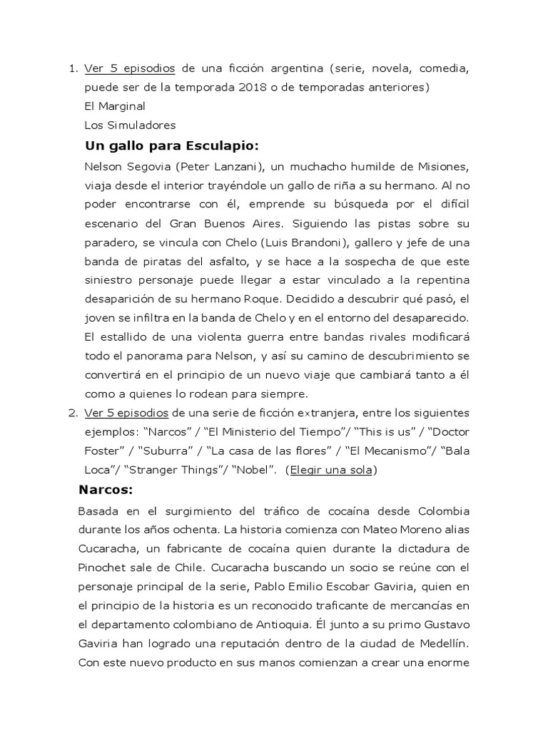 ejemplos: “Narcos” / “El Ministerio del Tiempo”/ “This is us” / “Doctor