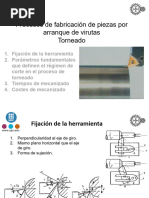 velocidad de avance de la pasada de acabado; d) el tiempo total de corte teniendo en cuenta la entrada de