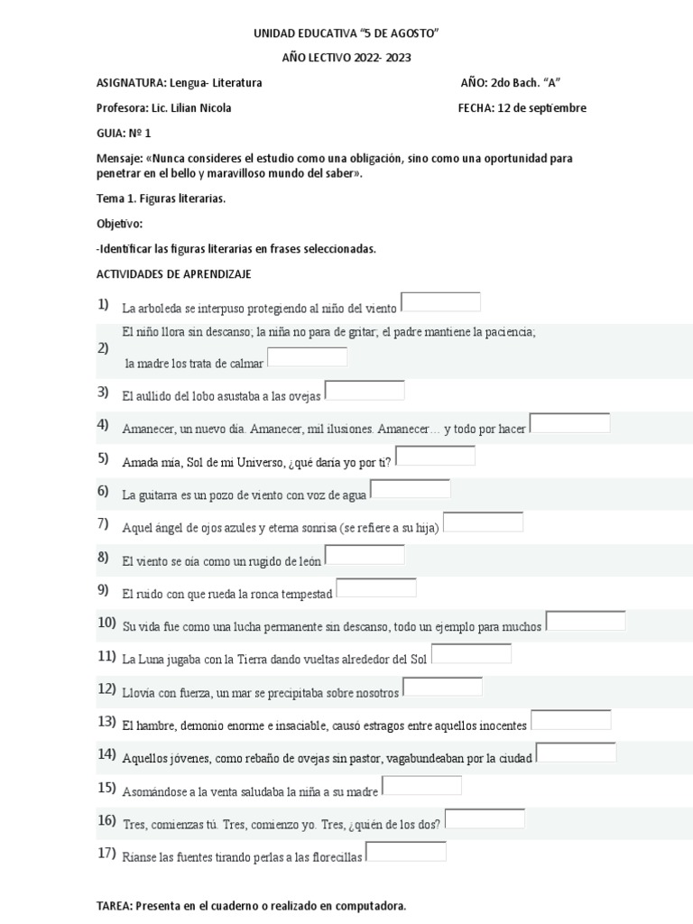 ASIGNATURA: Lengua- Literatura AÑO: 2do Bach. “A”