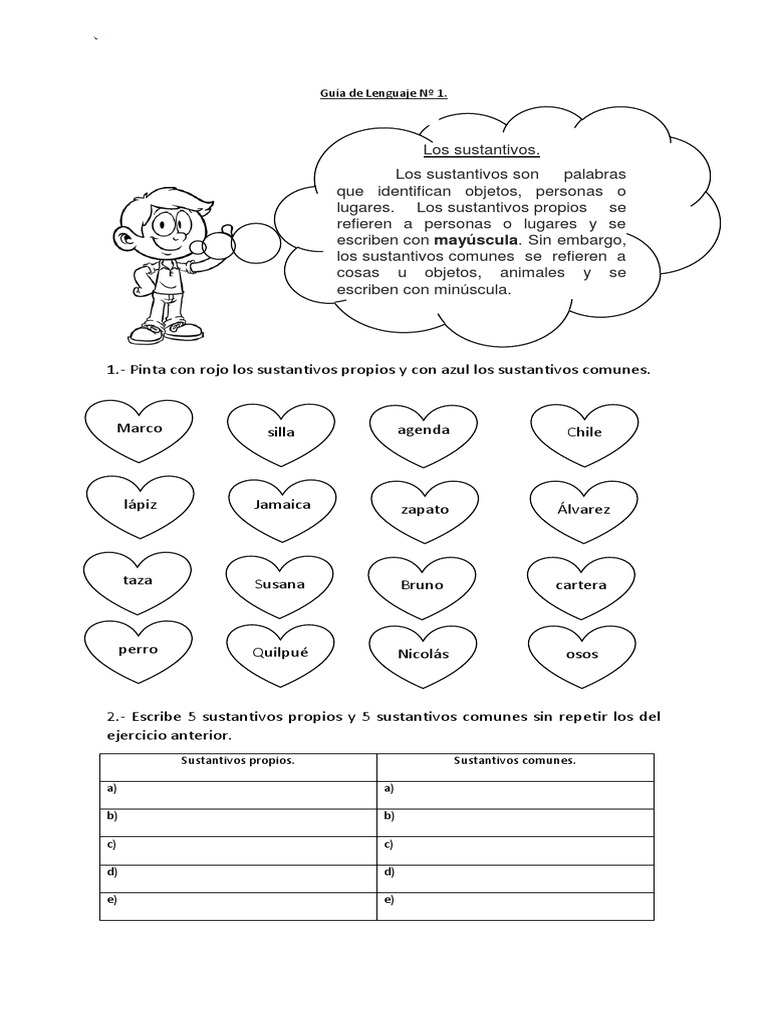 2.- Escribe 5 sustantivos propios y 5 sustantivos comunes sin repetir los del