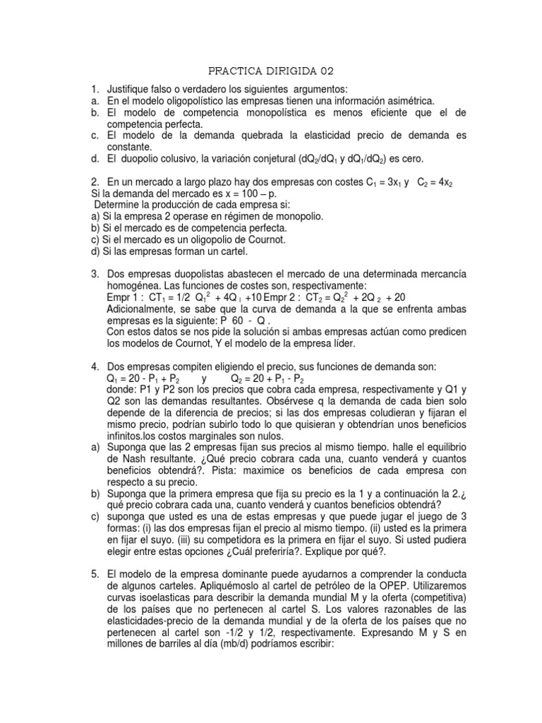 2. En un mercado a largo plazo hay dos empresas con costes C1 = 3x1 y C2 = 4x2