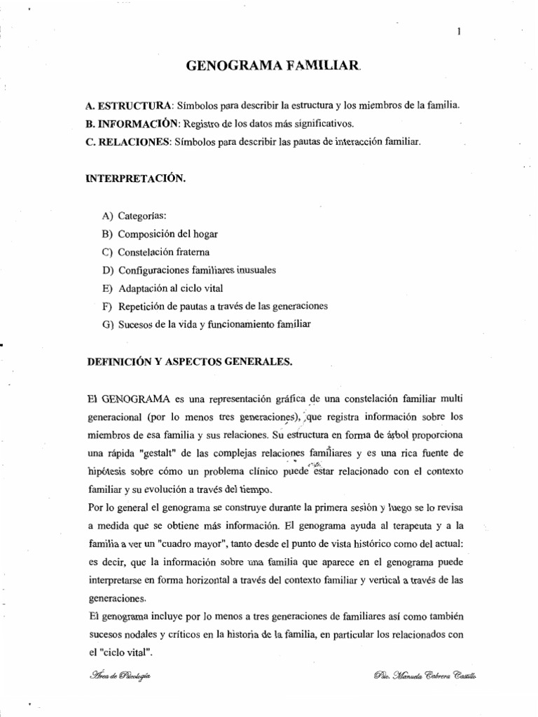 La base del genograma es la descripcin grfica de cmo diferentes miembros de una