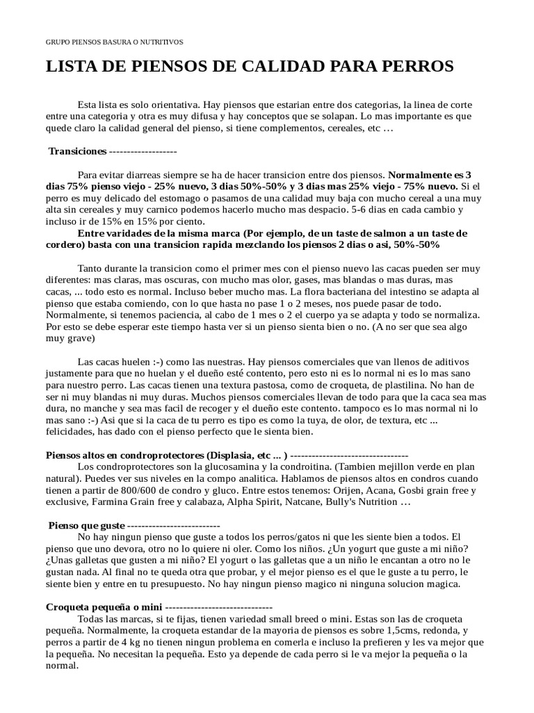 Esta lista es solo orientativa. Hay piensos que estarian entre dos categorias, la linea de corte