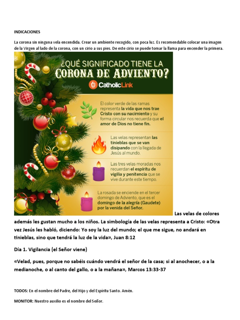 MONITOR: Vamos a encender ahora la primera vela de nuestra corona mientras cantamos la primera estrofa de: