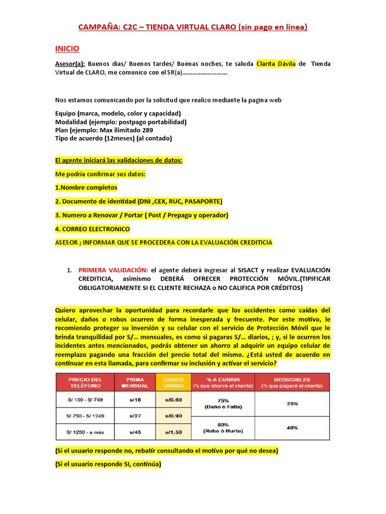 CAMPAÑA: C2C – TIENDA VIRTUAL CLARO (sin pago en línea)