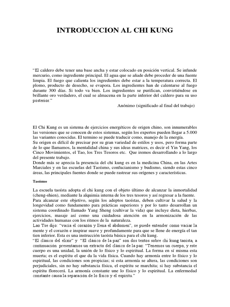 Estas notas resumidas sobre el chi kung, darán al practicante los fundamentos de la