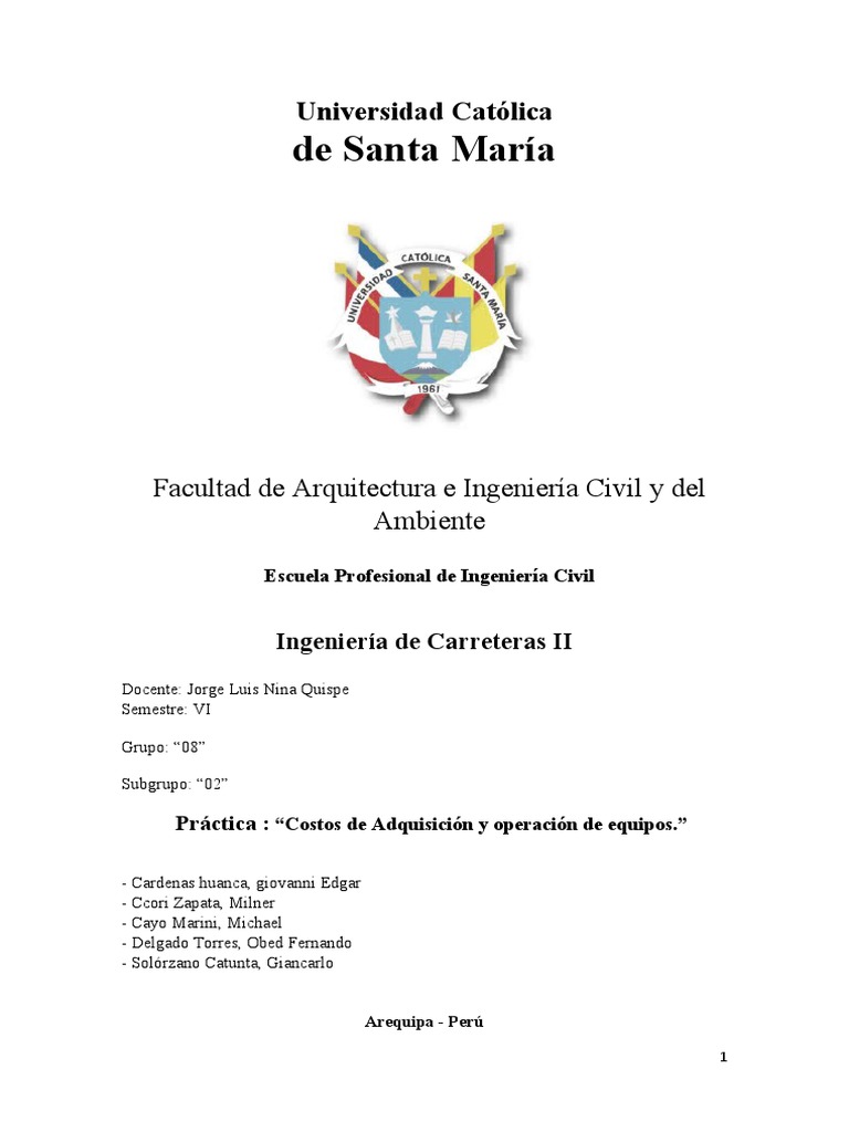 Práctica : “Costos de Adquisición y operación de equipos.”