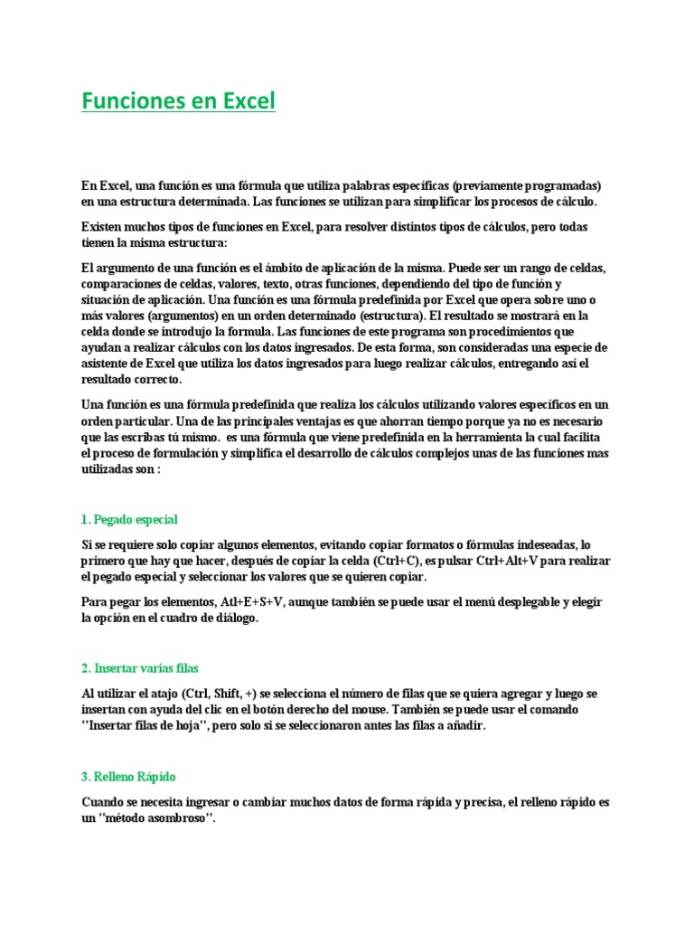 en una estructura determinada. Las funciones se utilizan para simplificar los procesos de cálculo.