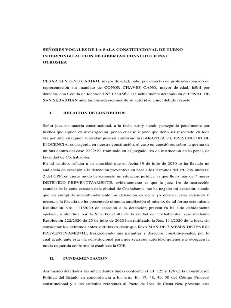 constitucional, para que restituya mi derecho conforme la Acción de Libertad, enmarcado