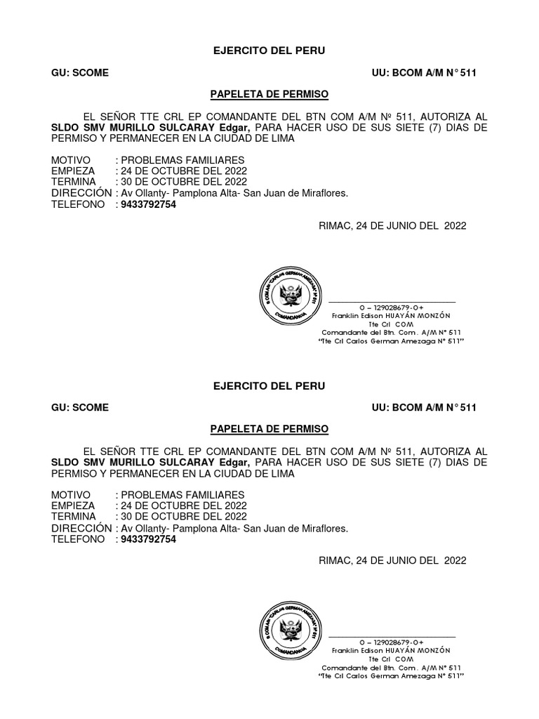 PAPELETA DE PERMISO