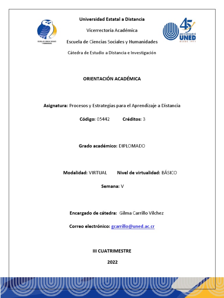 Procesos y Estrategias para el Aprendizaje a Distancia Código: 05442
