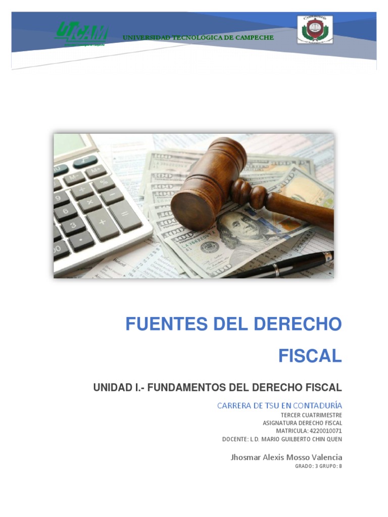 UNIDAD I.- FUNDAMENTOS DEL DERECHO FISCAL