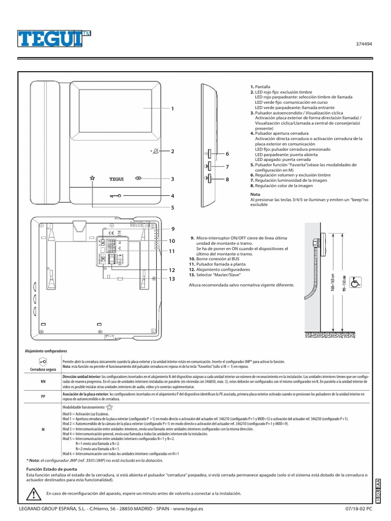LEGRAND GROUP ESPAÑA, S.L. - C/Hierro, 56 - 28850 MADRID - SPAIN - [Link] 07/18-02 PC