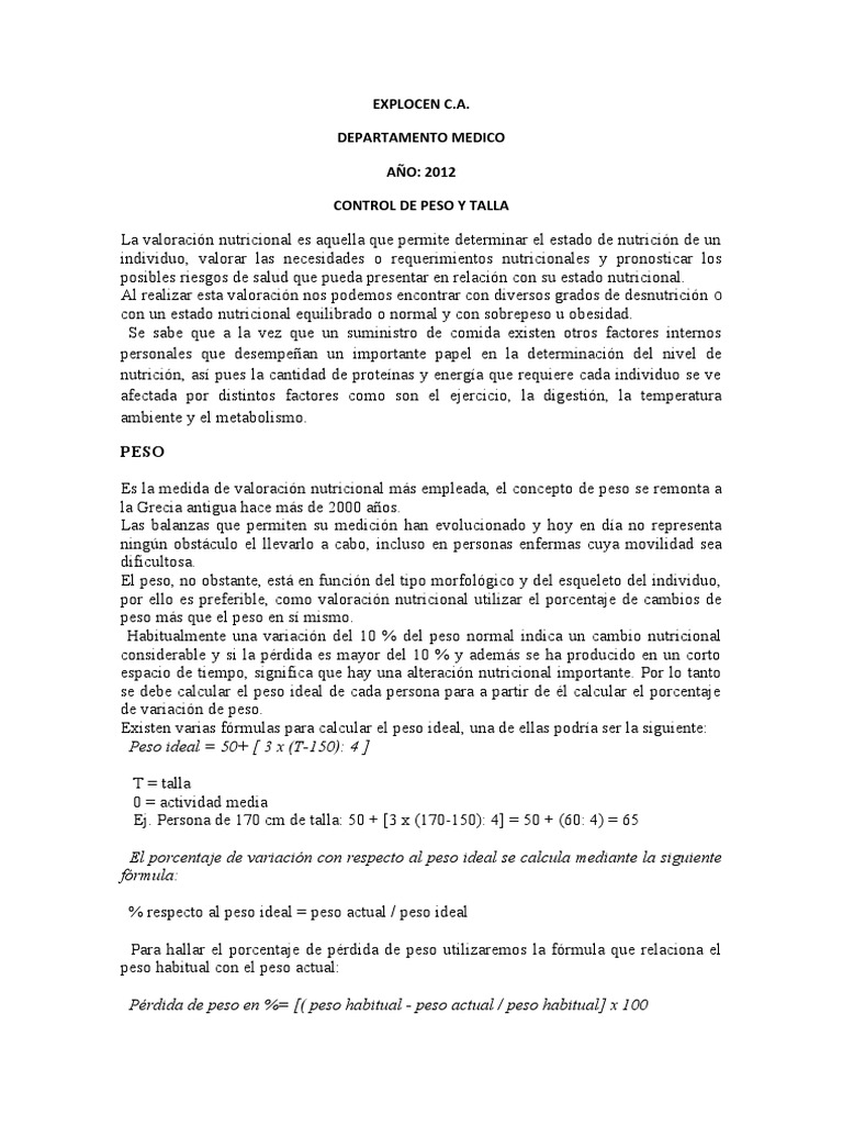 El control de peso y talla es el procedimiento mediante el cual se determina el