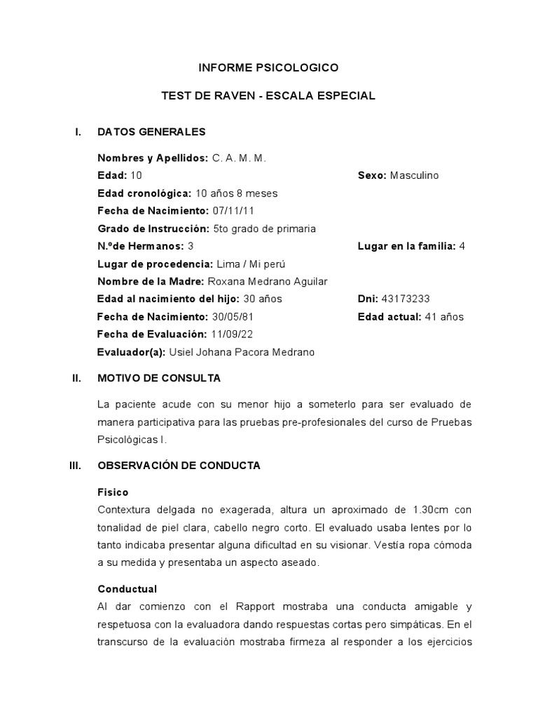 INFORME PSICOLOGICO