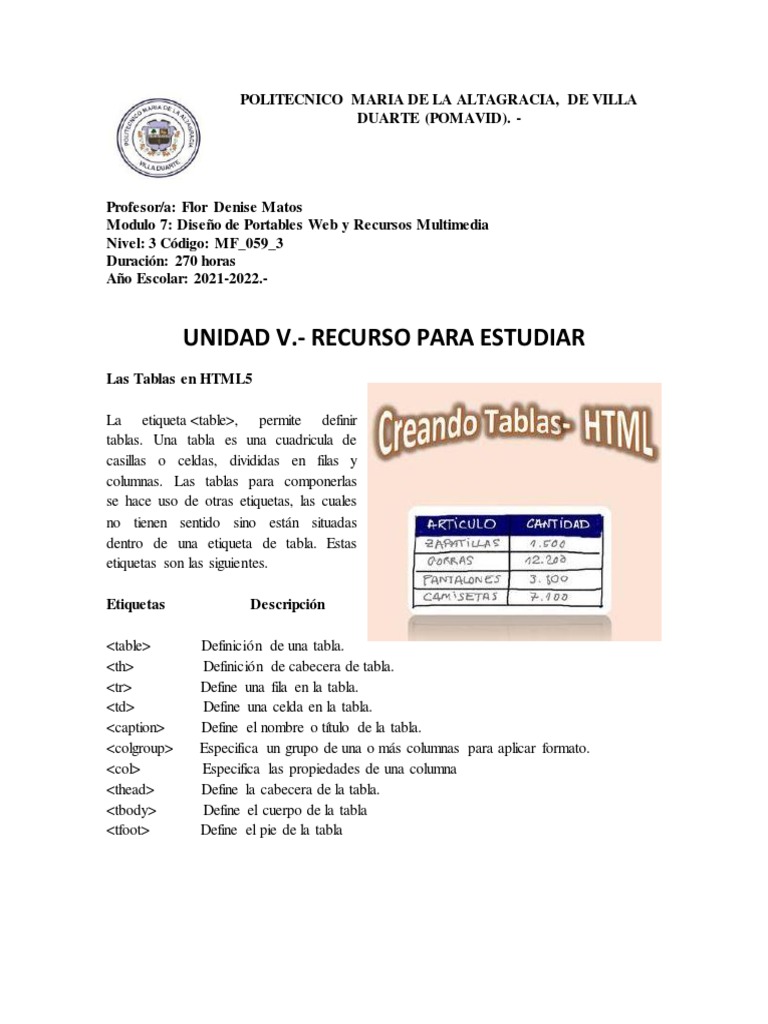 primero de ellos en la propia etiqueta de la tabla, especificando que su ancho ha de ser el