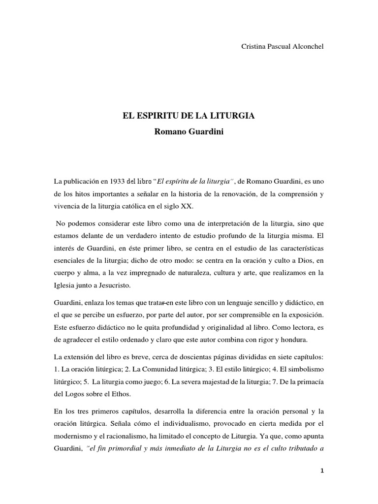 y liberadora, sobre las que versará toda la reflexión litúrgica del siglo XX. Guardini, en