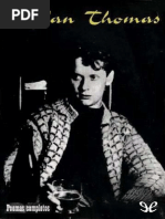Cuando hace tres aos, Aldo Pellegrini me llam para encomendarme la traduccin de los Collected Poems de Dylan Thomas, confieso que mi alegra ante la perspectiva de tan hermosa tarea se mezcl con un justificado temor. La eleccin que Pellegrini poeta, crtico lcido, investigador infatigable haca recaer en m, se deba a mi larga devocin por el poeta galense, parte de cuya obra yo haba traducido exclusivamente por placer. Pero si bien mi conocimiento de Dylan Thomas facilitaba la tarea, tambin proporcionaba la medida exacta de su dificultad. Tenia ya traducidos unos pocos poemas, los que mejor se avenan con nuestro idioma, los mas "castellanizables". Pero que hacer con aquellos otros en los que jugaban modos especiales de rima, de aliteracin, de respiracin, de equilibrio estudiado entre vocales y consonantes? Ante esta problemtica opte por un criterio doble. Cuando el lenguaje y el contenido podan unirse en espaol y transmitir un equivalente del ingls en cuanto al ritmo aunque las palabras fueran ms largas y hubiese que emplear mas artculos, poda mantenerse el equilibrio de longitudes silbicas la traduccin fue estricta. En otros casos me atuve principalmente al sentido, rastreado en numerosos libros acerca de la obra de Thomas y de acuerdo con esto fueron recreados algunos versos, pues una traduccin literal forzara el espritu de nuestra legua. Pero en todos los casos creo haber trabajado con el mximo de rigor. Y aunque la rima que ocasionalmente utiliza no se haya podido dar en espaol, algunas veces se han trasmitido las aliteraciones y siempre se ha conservado la estructura de cada metfora, la cadencia, los ictus, y el balanceo de las frases. De este equilibrio entre dos opciones, espero haya surgido un resultado que permita al pblico de habla espaola adentrarse en el universo oscuro, proftico, complejo y escandalosamente bello de esta poesa.