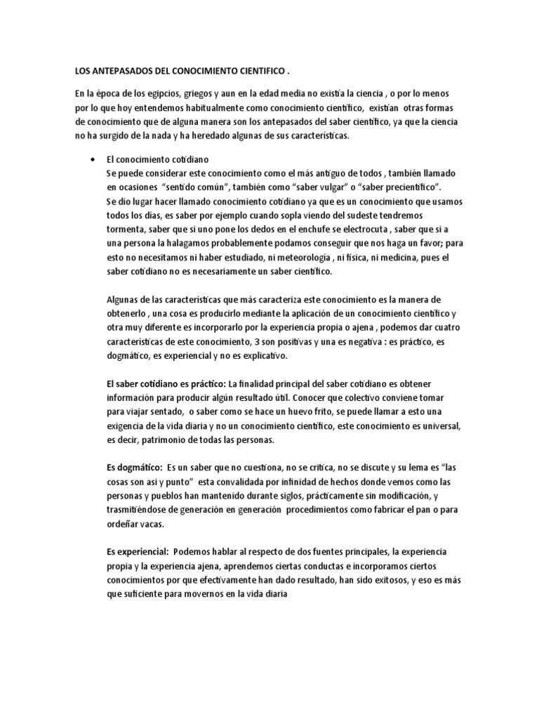 LOS ANTEPASADOS DEL CONOCIMIENTO CIENTIFICO .
