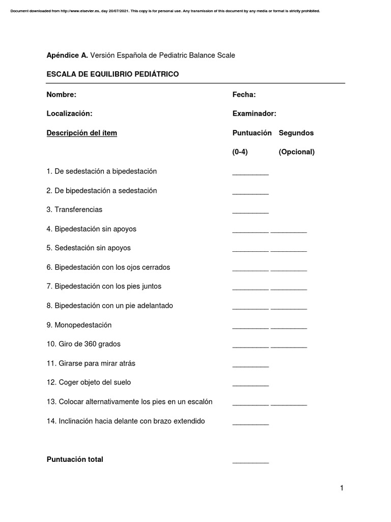 La Escala de Equilibrio Pediátrico se diseñó para que requiriese la utilización del menor