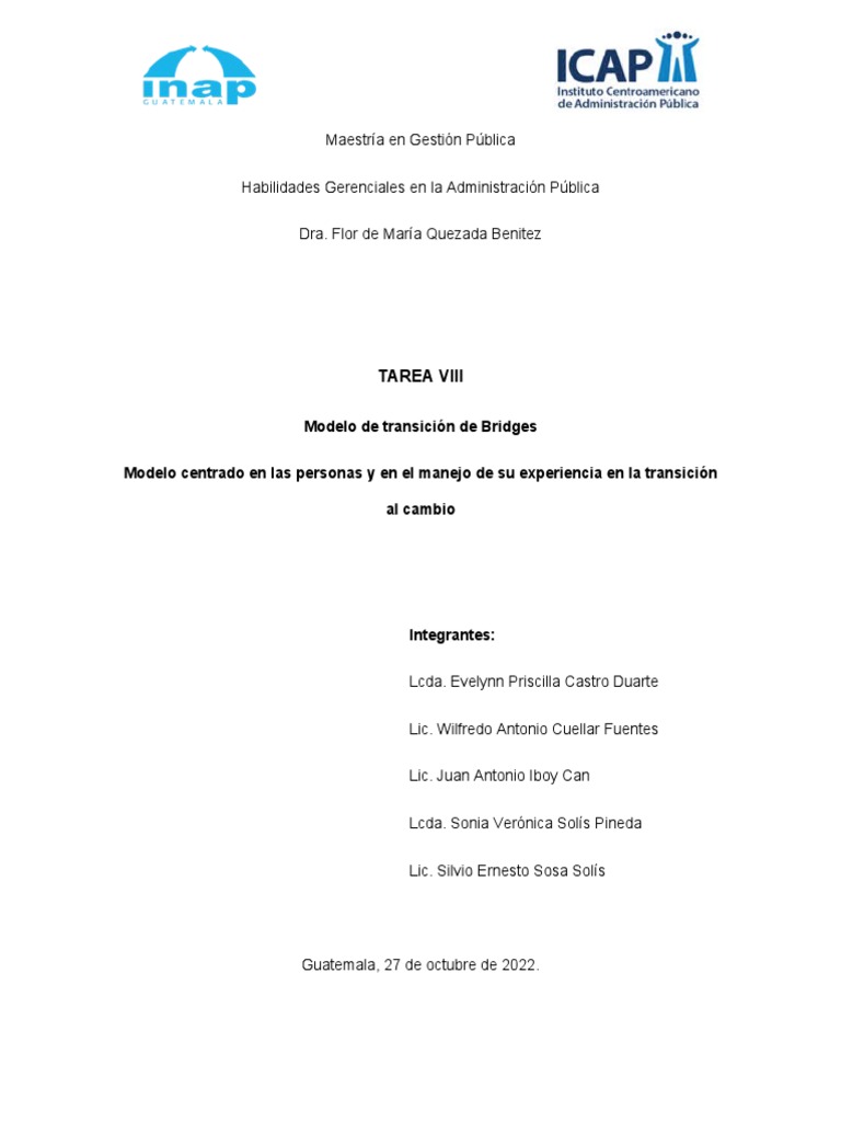 Considerando, que el modelo de transición de Bridges es uno de los modelos que,