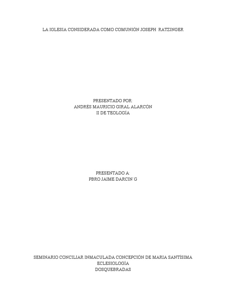 LA IGLESIA CONSIDERADA COMO COMUNIÓN JOSEPH RATZINGER