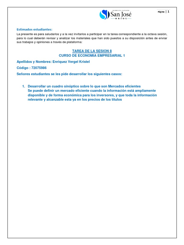 1. Desarrollar un cuadro sinóptico sobre lo que son Mercados eficientes