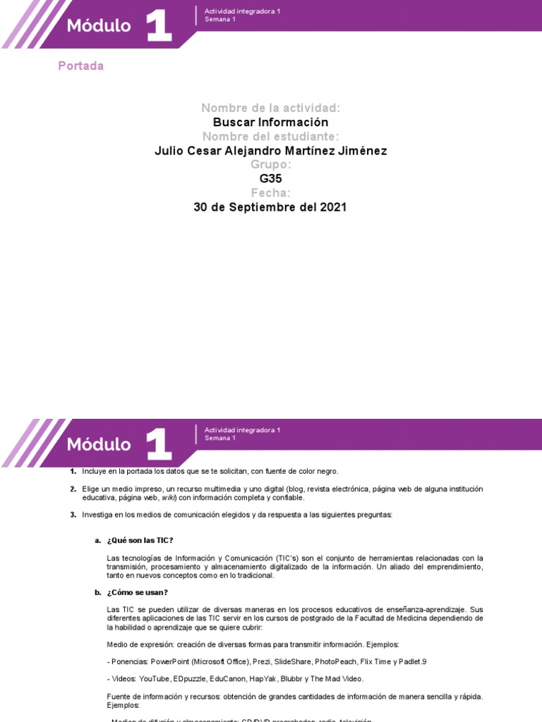 1. Incluye en la portada los datos que se te solicitan, con fuente de color negro.