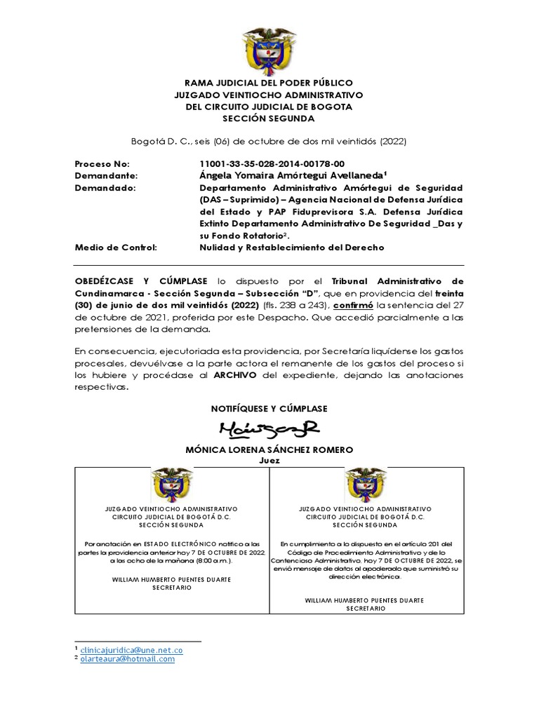 partes la providencia anterior hoy 7 DE OCTUBRE DE 2022, Código de Procedimiento Administrativo y de lo
