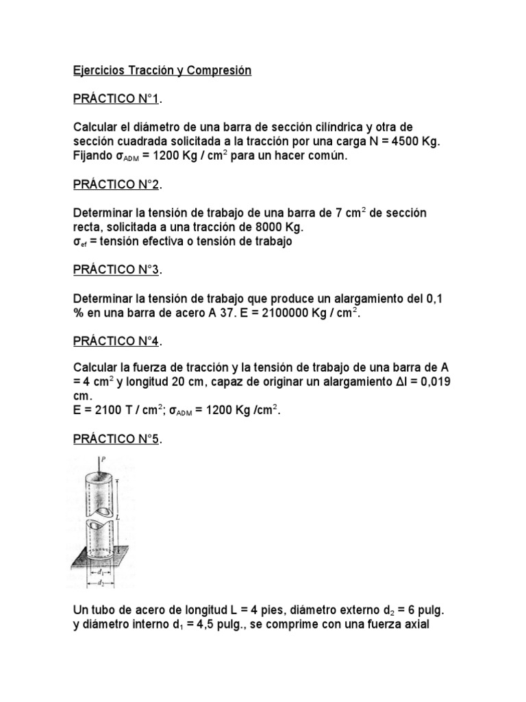 y diámetro interno d1 = 4,5 pulg., se comprime con una fuerza axial