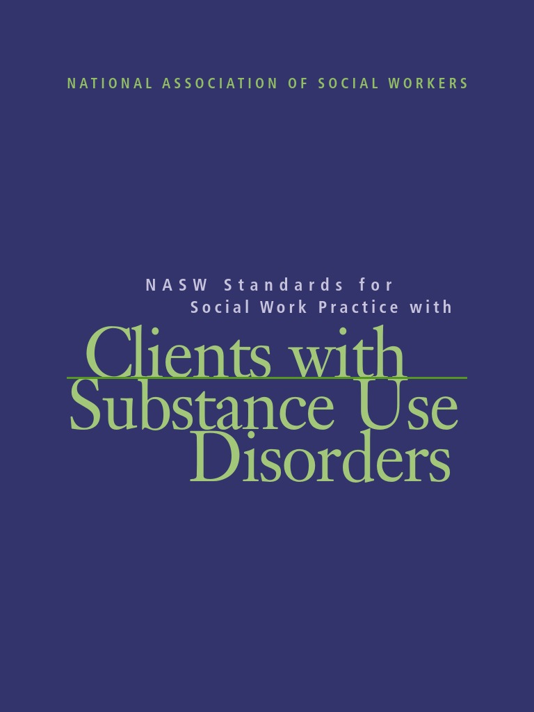 although priorities may vary. These standards are designed to enhance social workers’ awareness. in-depth knowledge about multidimensional problems and services. and methods of practice across settings. Social workers have unique. 2004). and organizations. therefore. This approach to service delivery requires that social workers be knowledgeable about the processes of addiction and recovery and that they and their clients develop effective treatment plans together. cross-cutting nature of social work services. families. using existing and emerging resources. Specifically. are essential to the screening and treatment planning of clients with SUDs. knowledge. Goals of the Standards Given the broad. The Bureau of Labor Statistics (BLS) projects that job opportunities for social workers in the substance abuse treatment arena will grow rapidly through 2012 (BLS. and. the goals of the NASW Standards for Social Work Practice with Clients with Substance Use Disorders are intended to: I Inform social work practice and interventions with clients who have SUDs. interventions with clients who have SUDs can extend across multiple practice settings and involve individuals. skills. Improve the quality of treatment for clients with SUDs. communities. 7 I . values.can markedly improve treatment services for clients and their families.