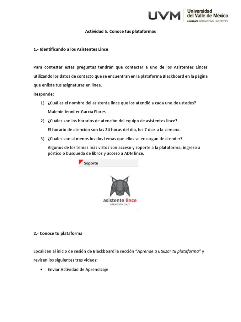 1) ¿Cuál es el nombre del asistente lince que los atendió a cada uno de ustedes?