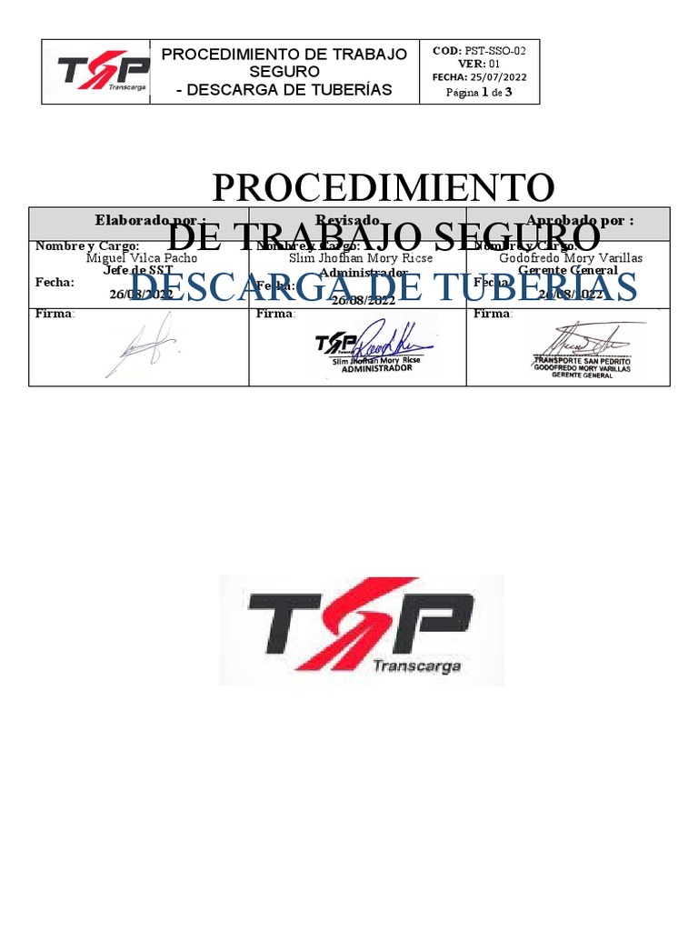 - DESCARGA DE TUBERÍAS Página 1 de 3