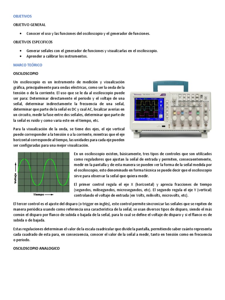 características y procedimientos señalados para los osciloscopios
