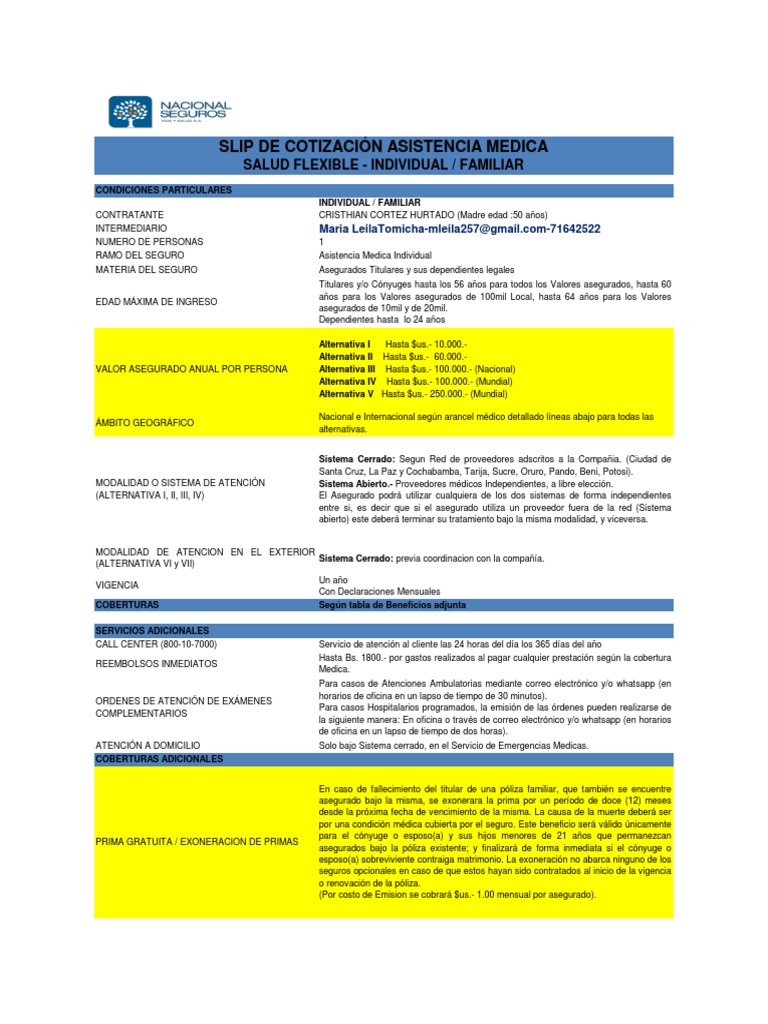 SLIP DE COTIZACIÓN ASISTENCIA MEDICA