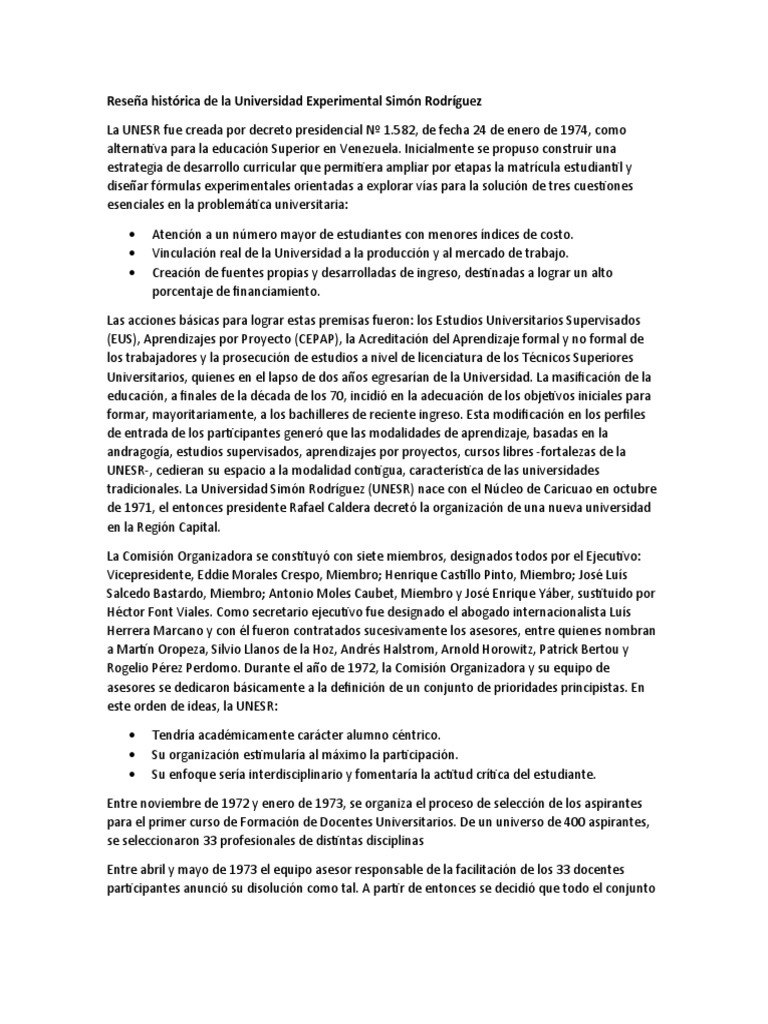 Reseña histórica de la Universidad Experimental Simón Rodríguez