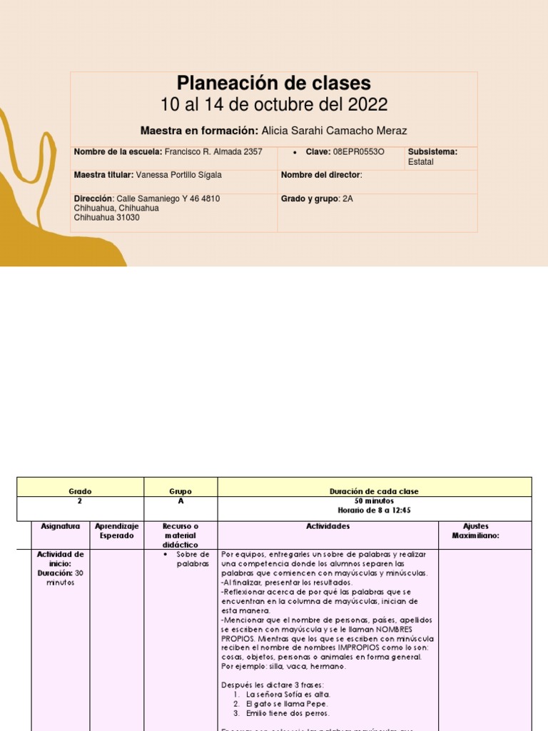 Dirección: Calle Samaniego Y 46 4810 Grado y grupo: 2A