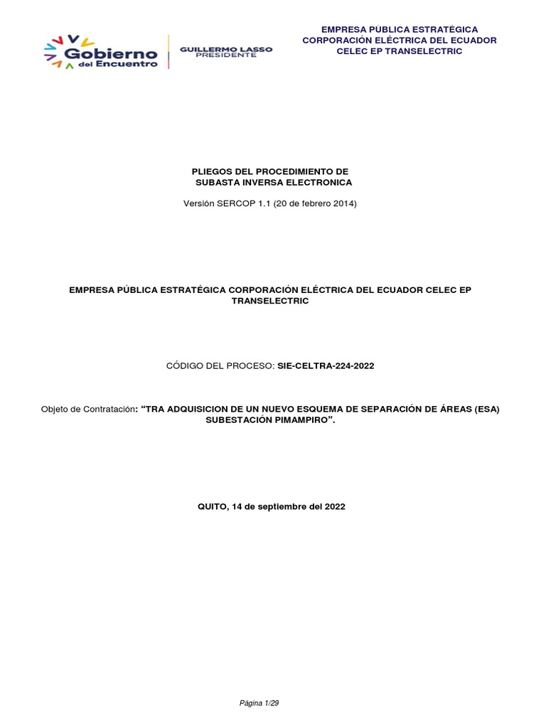 Subasta Electrónica: ESA Subestación Pimampiro